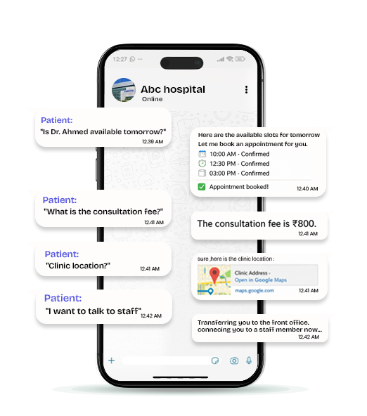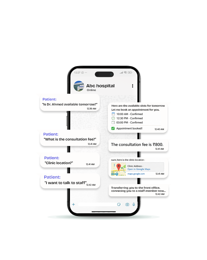 Book a personalized demo and experience how our AI Front Desk Assistant works in real time. See how it answers patient queries, books appointments instantly, and supports your clinic 24/7 with zero delays.